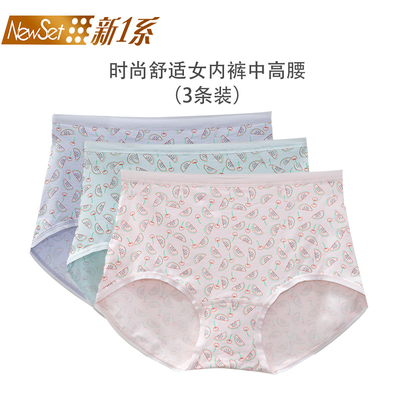 【产品名称:新1系新一系女士内裤2022新款棉莫三角裤中高腰印花三条装打底裤】