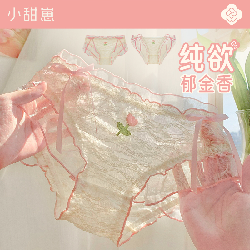 【产品名称:小甜崽郁金香少女纯欲风内裤女高开叉系带女生蕾丝性感女士三角裤】