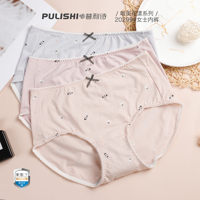 【产品名称:一盒2条 普利诗内裤女士中高腰莫尔代棉三角短裤头抗菌底裆20299】