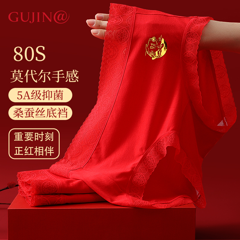 【产品名称:古今@本命年大红色女士内裤高腰桑蚕丝新娘结婚礼物龙年无痕短裤】