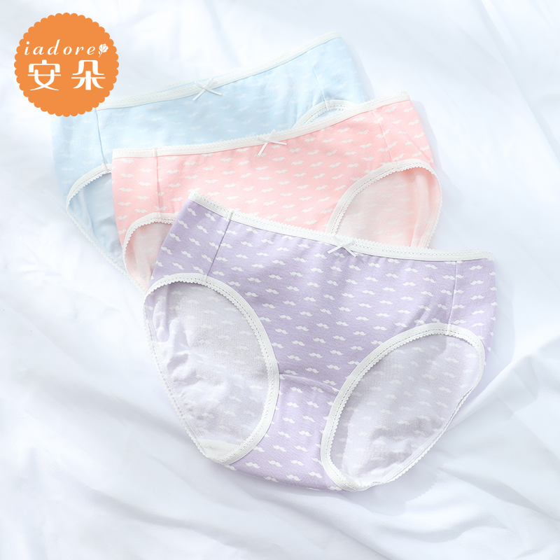【产品名称:安莉芳outlets安朵清新可爱印花蕾丝边女士内裤棉质中腰三角裤】