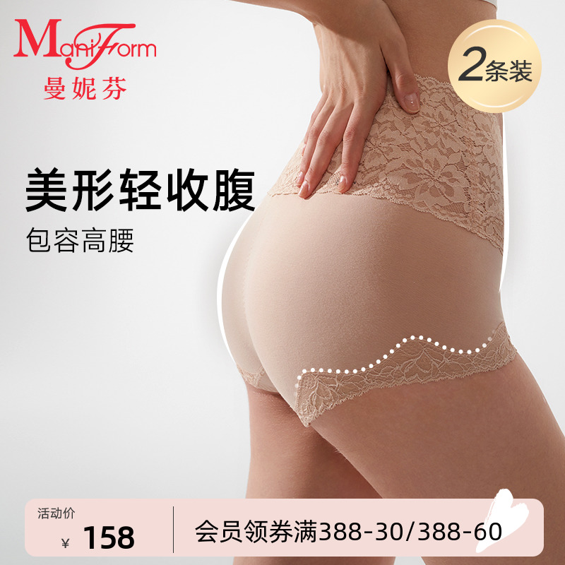 【产品名称:2条装曼妮芬性感蕾丝高腰平腿裤内裤女士安全裤舒适打底裤女生棉】