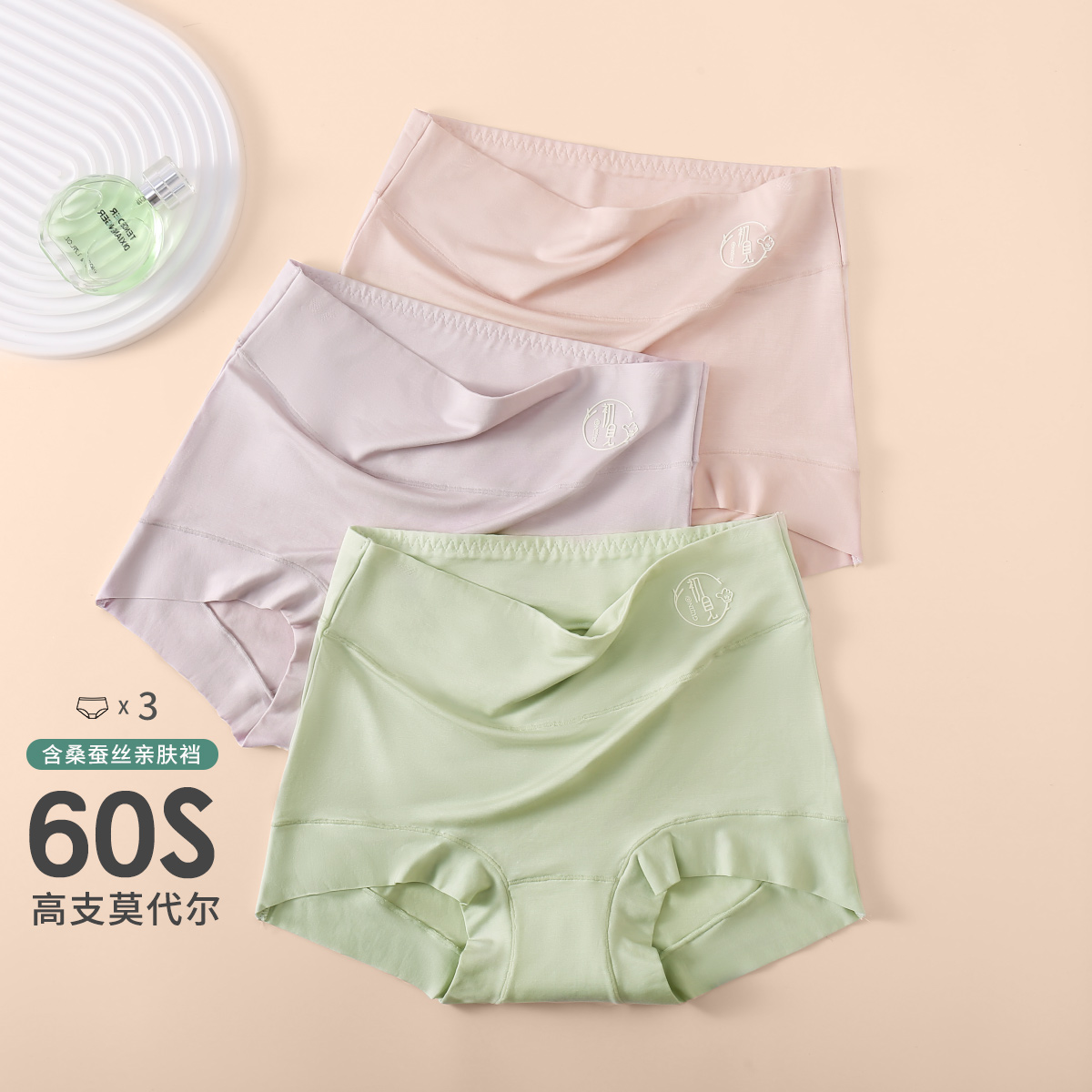 【产品名称:古今@3条装 60S舒适高腰收腹提臀含桑蚕丝底裆棉透气女士内裤抗菌】