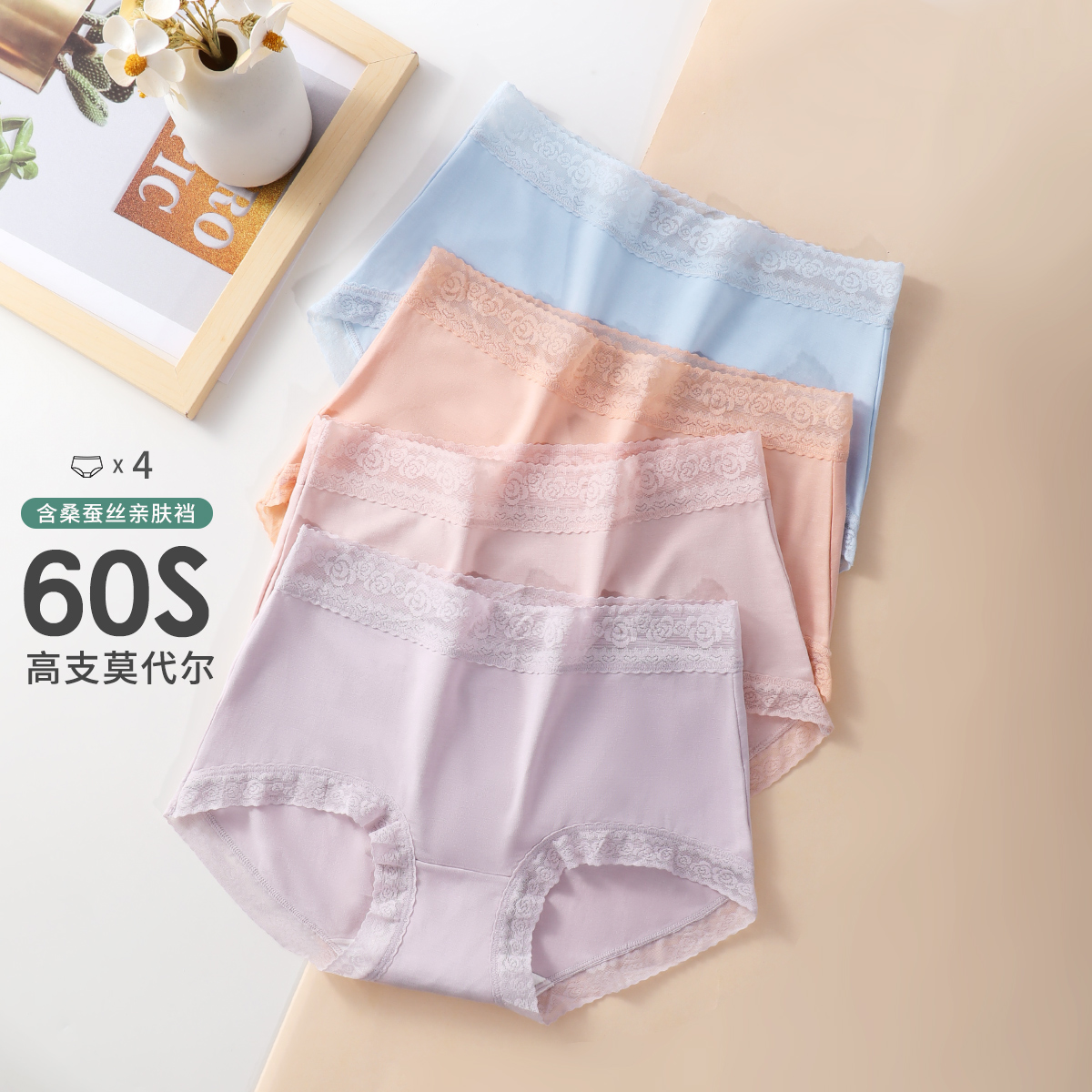 【产品名称:古今@4条装 【60S莫代尔】蕾丝花边高弹贴身裹臀女士内裤】