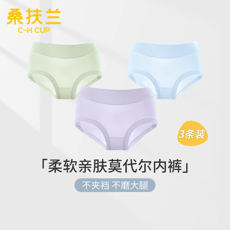 【产品名称:桑扶兰莫代尔女士内裤女无痕女生少女透气短裤秋薄款3条装】