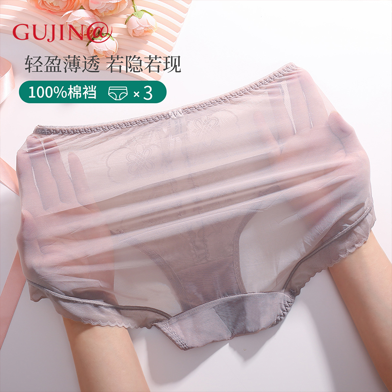 【产品名称:古今@女士内裤纯棉裆透气镂空网纱性感蕾丝少女三角短裤夏季薄款】