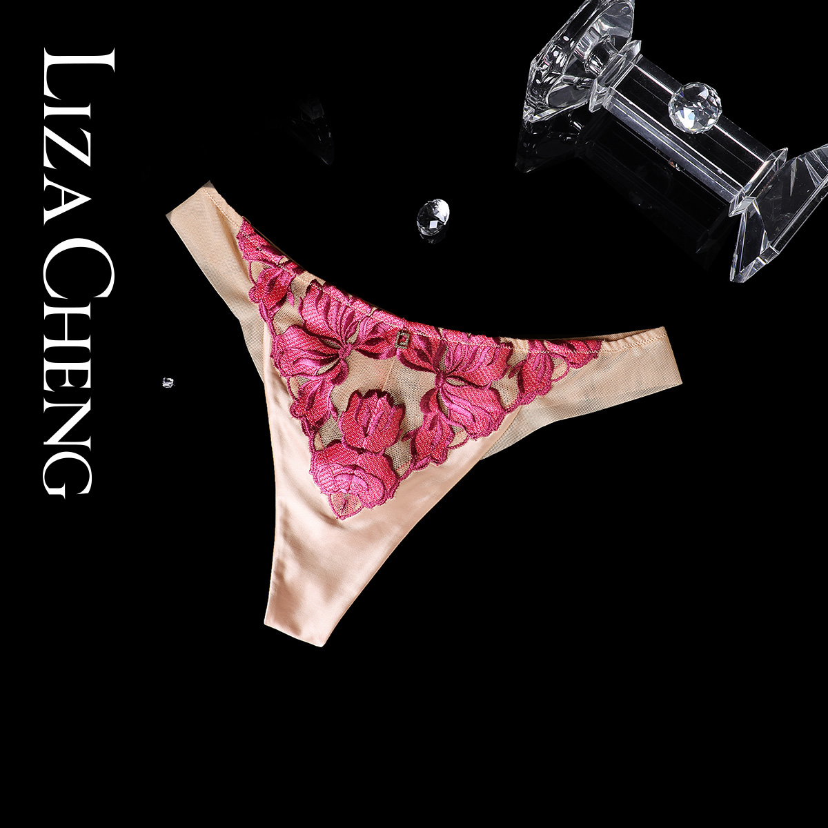 【产品名称:Liza Cheng云裳仙子系列百合花刺绣性感T裤蕾丝网纱女内裤L200119】