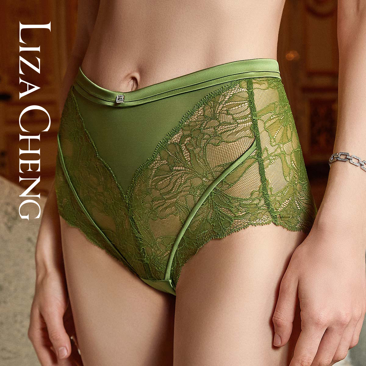 【产品名称:LizaCheng迷蝶香系列橄榄绿性感全蕾丝高腰三角裤女士内裤L300116】