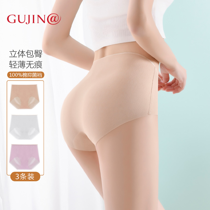 【产品名称:古今@女士内衣3条装100%纯棉抑菌裆女轻薄透气包臀无痕三角内裤女】