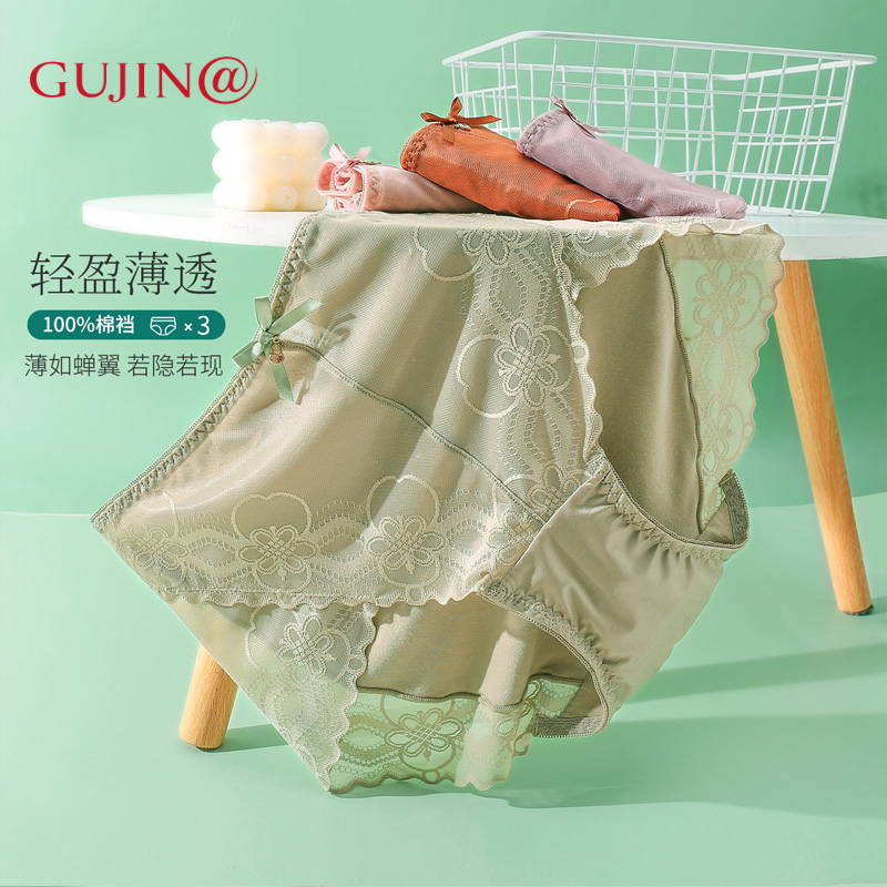 【产品名称:古今@3条装柔软蕾丝性感女士内裤夏轻薄透气大码棉裆中腰三角裤】