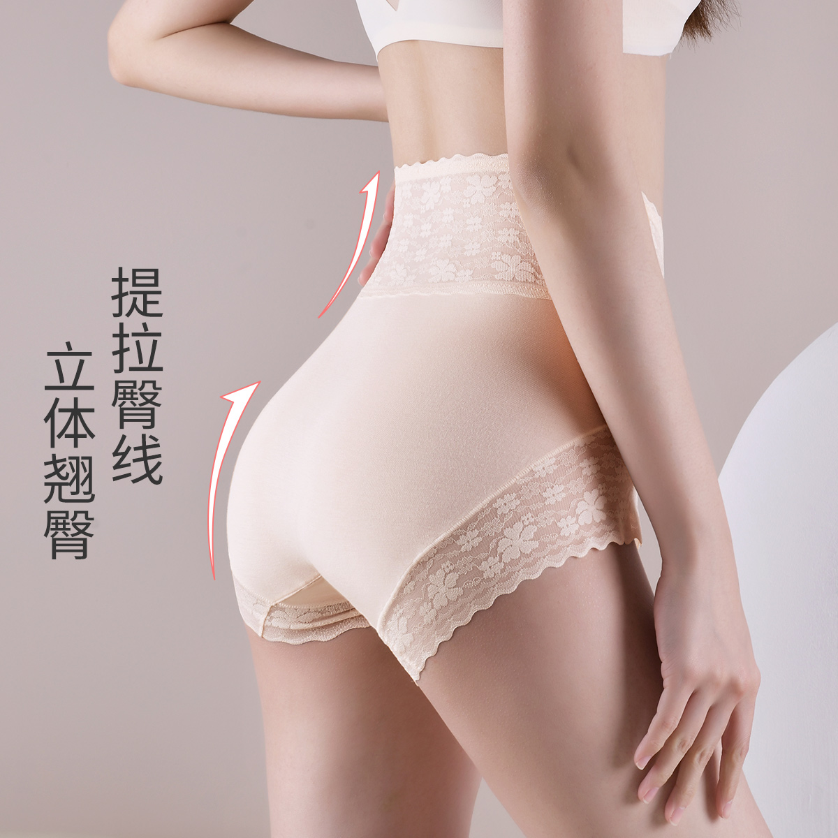 【产品名称:古今@冰丝无痕蕾丝性感内裤女士薄款纯棉抗菌高腰收腹提臀裤秋季】