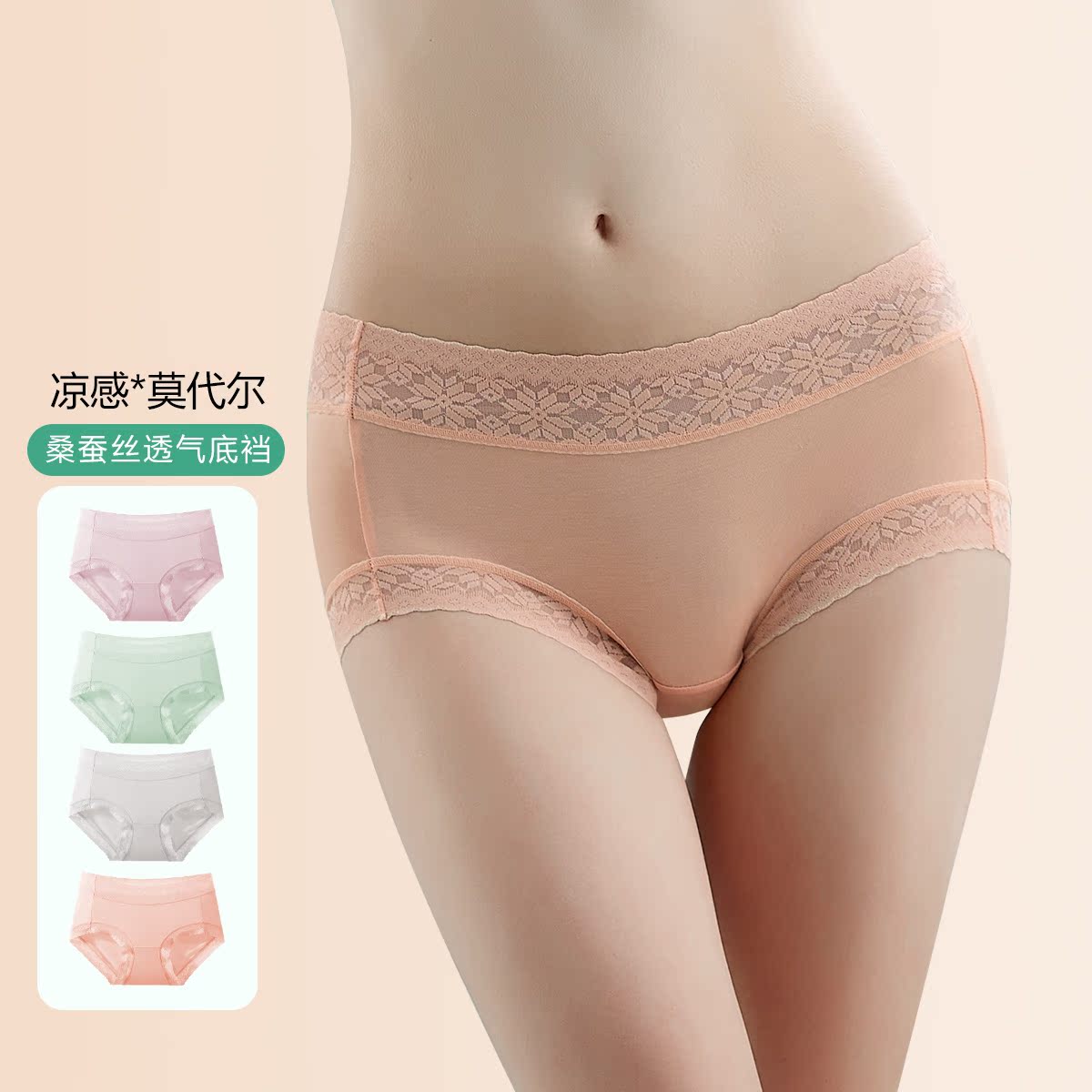 【产品名称:古今@4条装【100%桑蚕丝底裆】 高弹透气女士内裤收腹提臀三角裤】