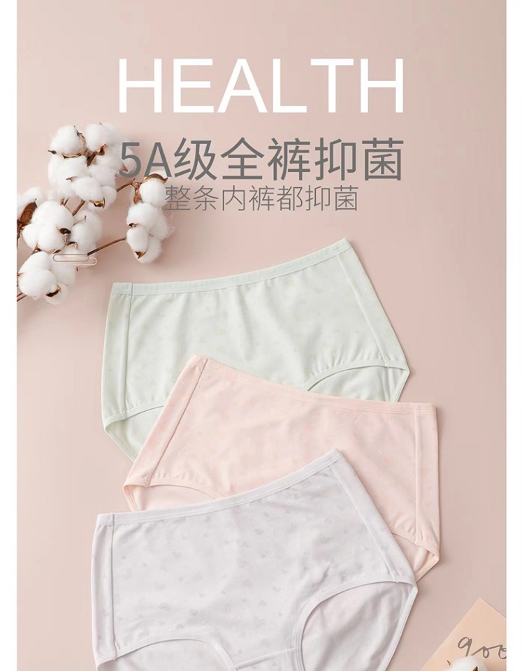 【产品名称:普利诗新款女士中高腰内裤女青年简约柔纱棉抗菌内衣三角裤2条装】