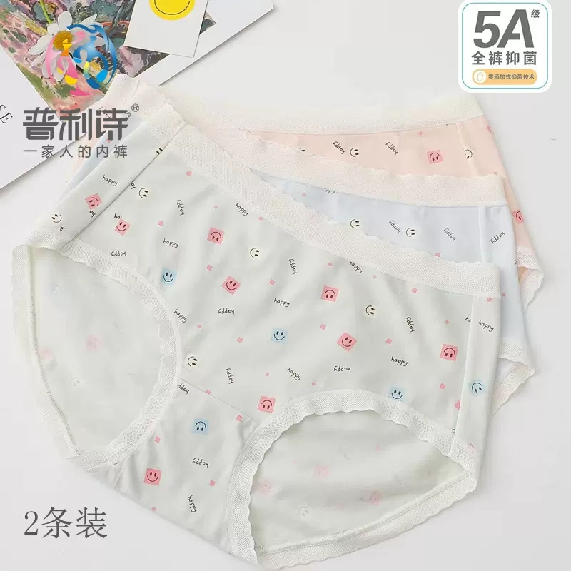 【产品名称:普利诗新款女士内裤女莫代尔棉抗菌中腰三角裤柔软弹力裤头2条装】
