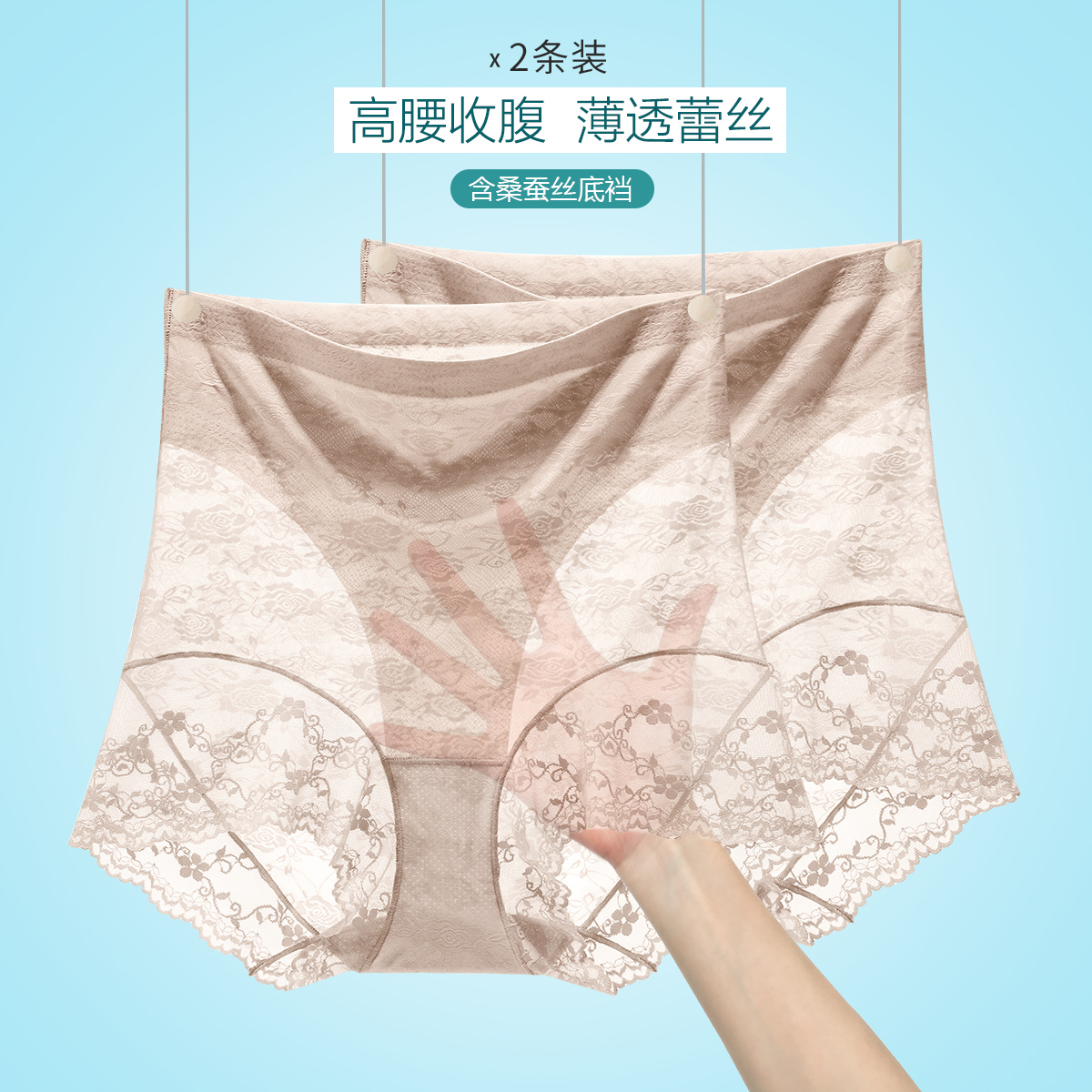【产品名称:古今@2条装【桑蚕丝双层底裆】高腰超薄提花蕾丝无痕内裤女士抗菌】