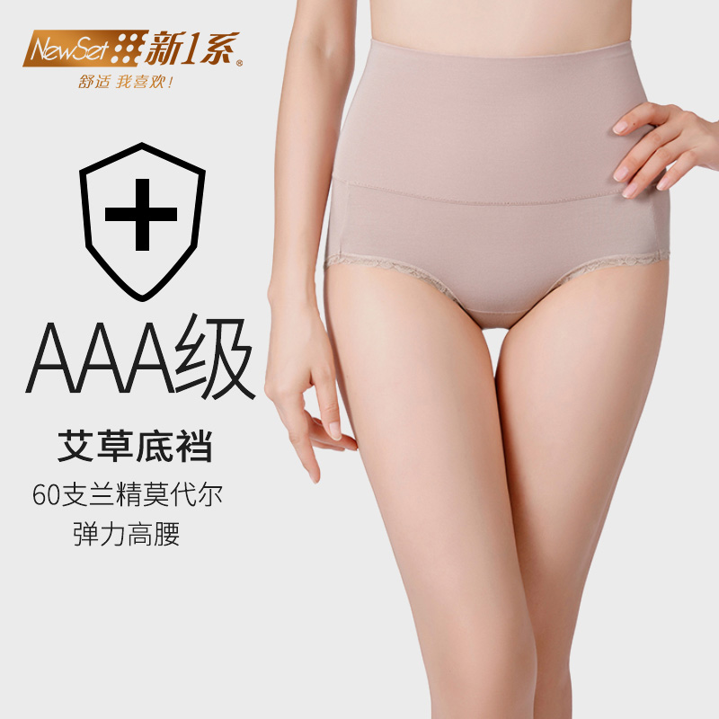 【产品名称:新一系艾草抗菌底挡收腹提臀高腰女士莫代尔内裤显瘦蕾丝边三角裤】