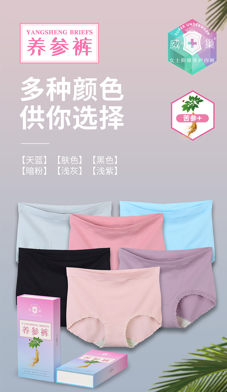 【产品名称:威巢养参女士内裤女纤维棉蕾丝边中腰三角裤抑菌5条装】