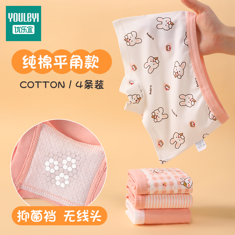 【产品名称:儿童内裤女童纯棉平角夏季薄全棉四角短裤中大童女宝宝100%不夹pp】
