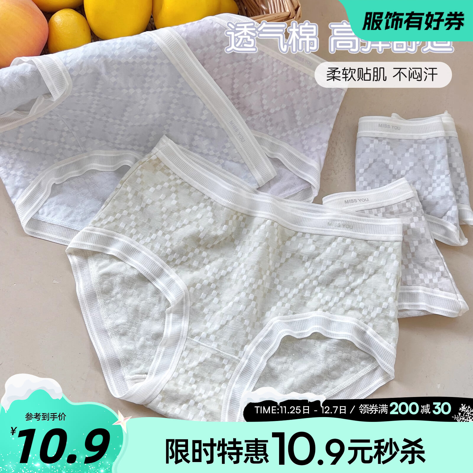 【产品名称:六只兔子内裤女桑蚕丝透气底裆亲肤不闷汗三角裤短裤中腰女士裤头】