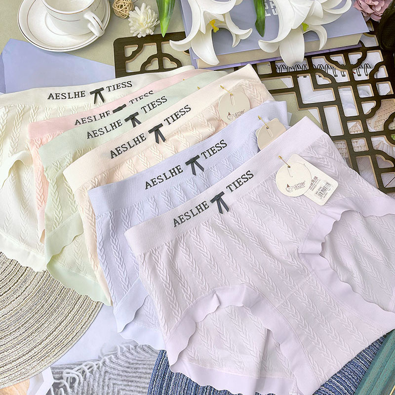 【产品名称:6RBI蕾丝微透纯欲内裤女透气纯色女士甜美网纱百褶性感中腰三角裤】
