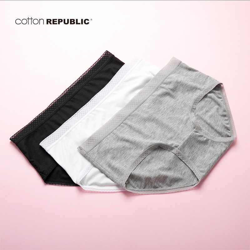 【产品名称:棉花共和国旗舰店运动黑白灰莫代尔纯色夏薄中腰内裤套盒女士无痕】