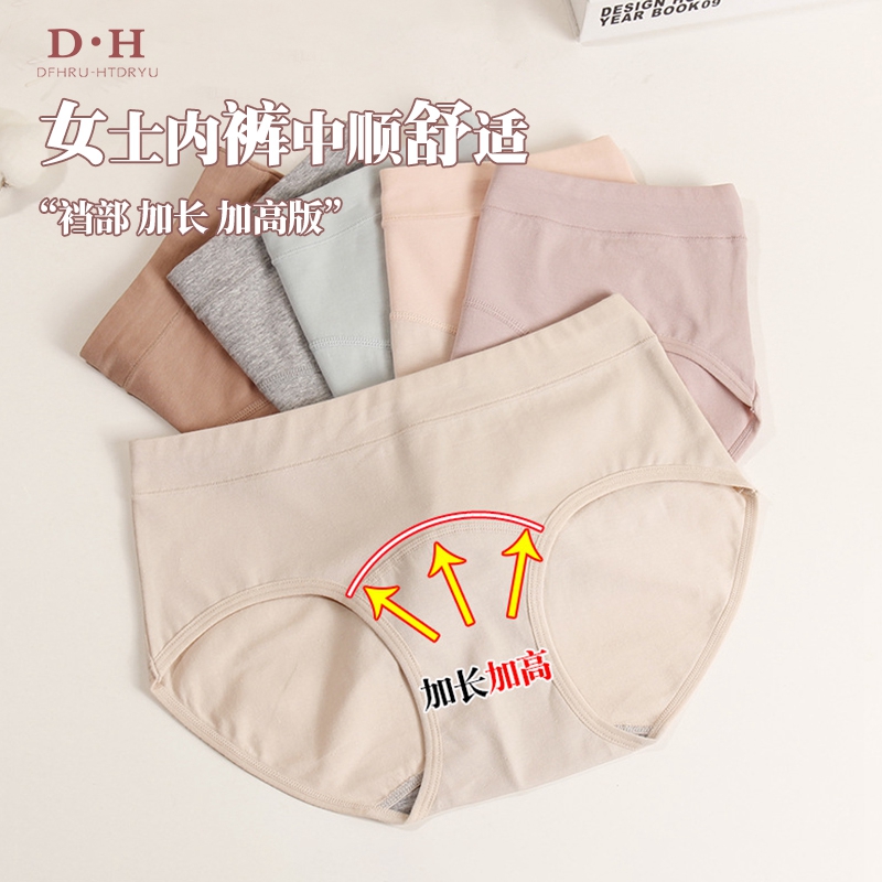 【产品名称:大码胖MM女士内裤棉质中腰舒适提臀前面加长加高裆部透气三角内裤】
