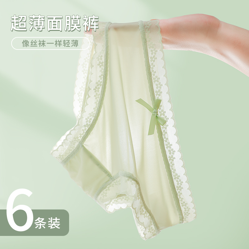 【产品名称:薄款冰丝内裤女士无痕蕾丝纯棉抗菌裆透气性感少女纯欲速干三角裤】