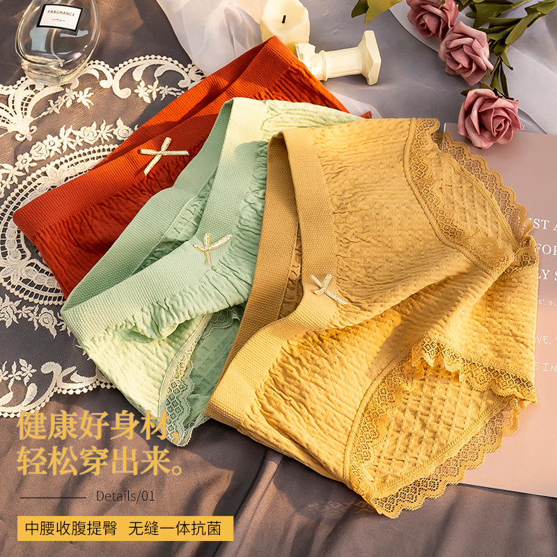 【产品名称:六只兔子少女无缝内裤女士无痕中腰大码石墨烯纯棉抗菌女生三角裤】