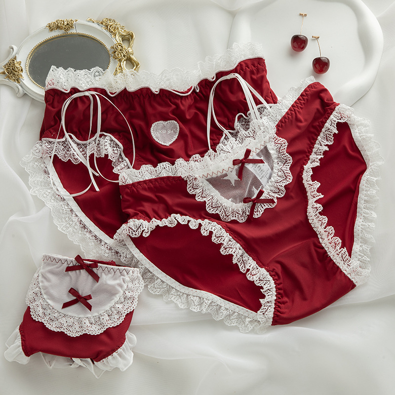 【产品名称:六只兔子~日系少女内裤女可爱牛奶丝爱心蝴蝶结丝带女士三角短裤】