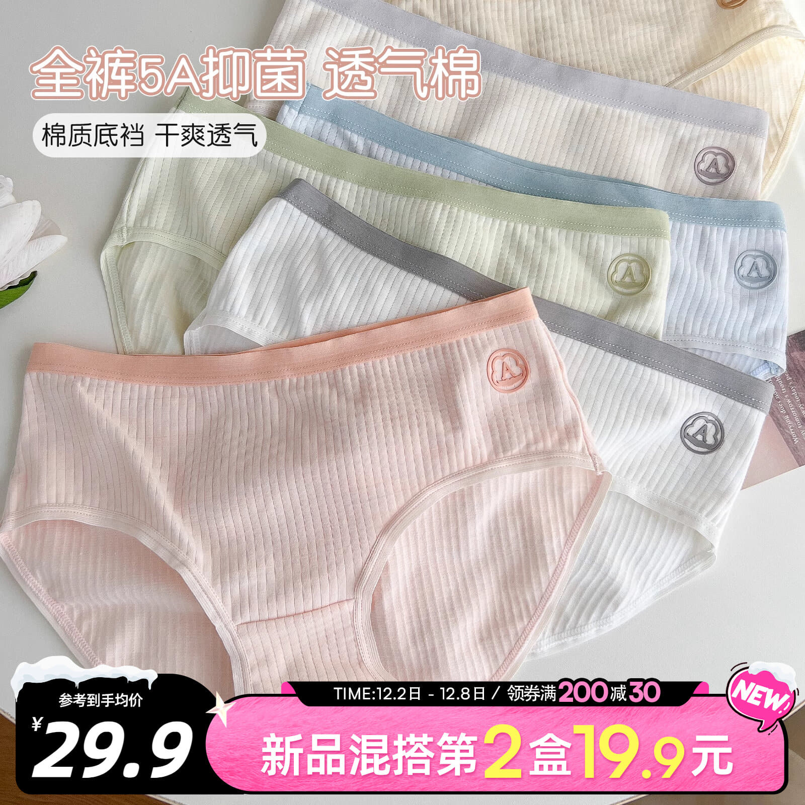【产品名称:六只兔子内裤女5A抗菌纯棉底裆女士三角裤2023新款中腰裤头4条装】