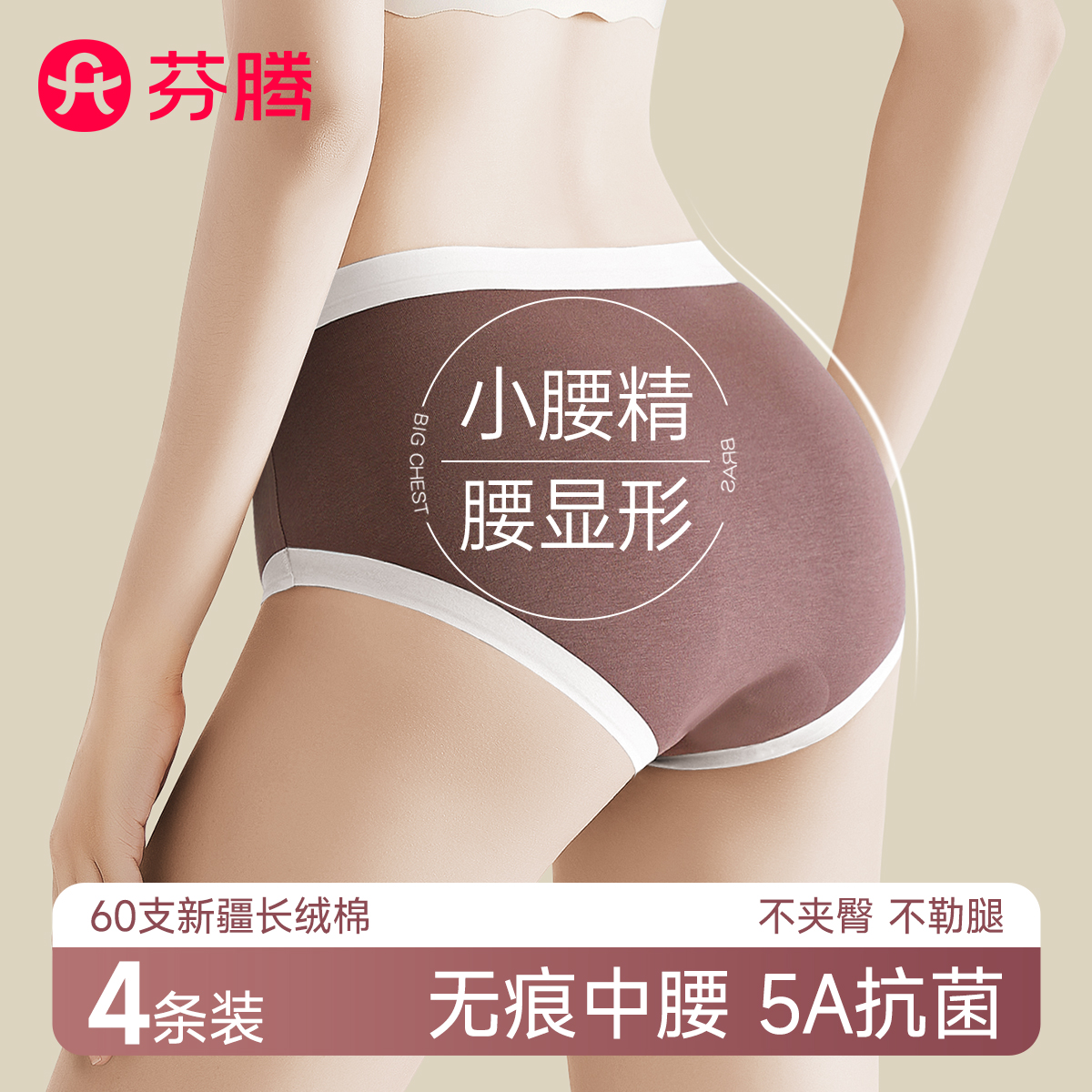 【产品名称:芬腾女士内裤女纯棉抗菌少女性惑舒适无痕女生中腰乳酸菌三角短裤】