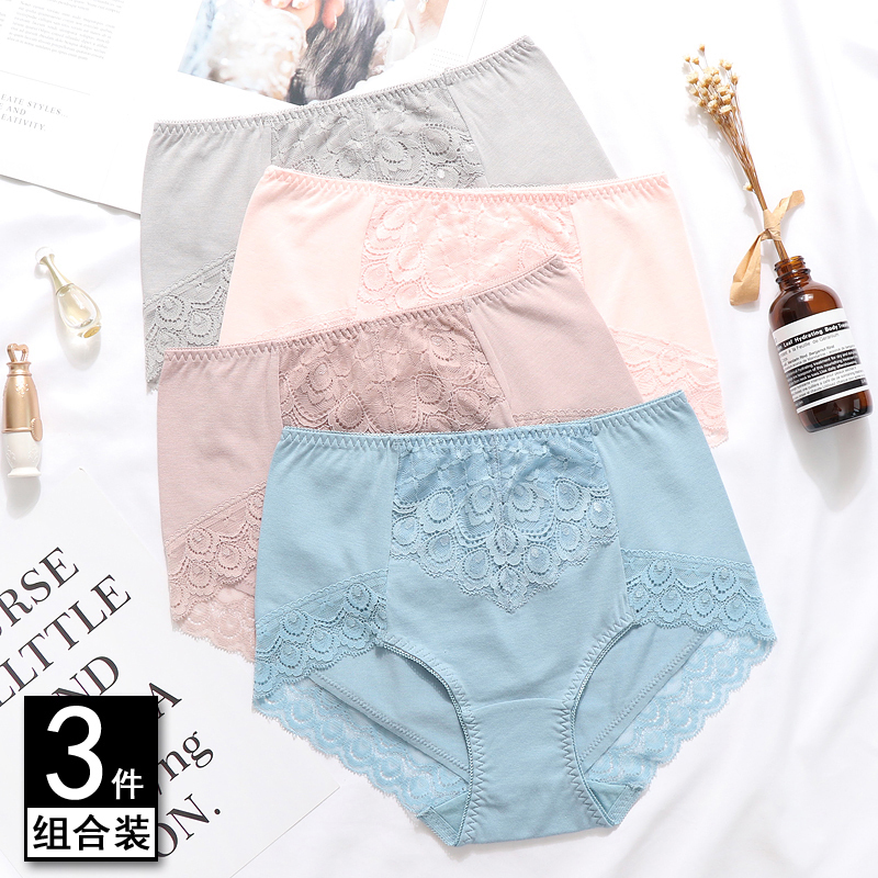 【产品名称:大码内裤女士200斤 莫代尔棉蕾丝纯棉收腹高腰无痕三角裤包臀舒适】