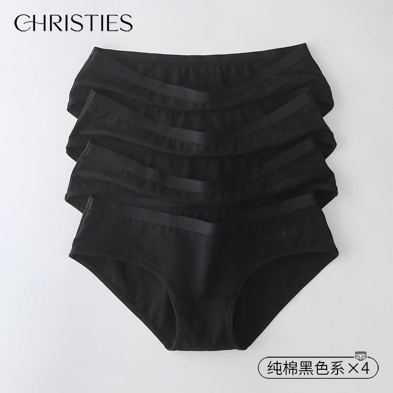 【产品名称:黑色内裤女生纯棉低腰抗菌无痕简约中腰舒适黑色系女士纯色三角裤】