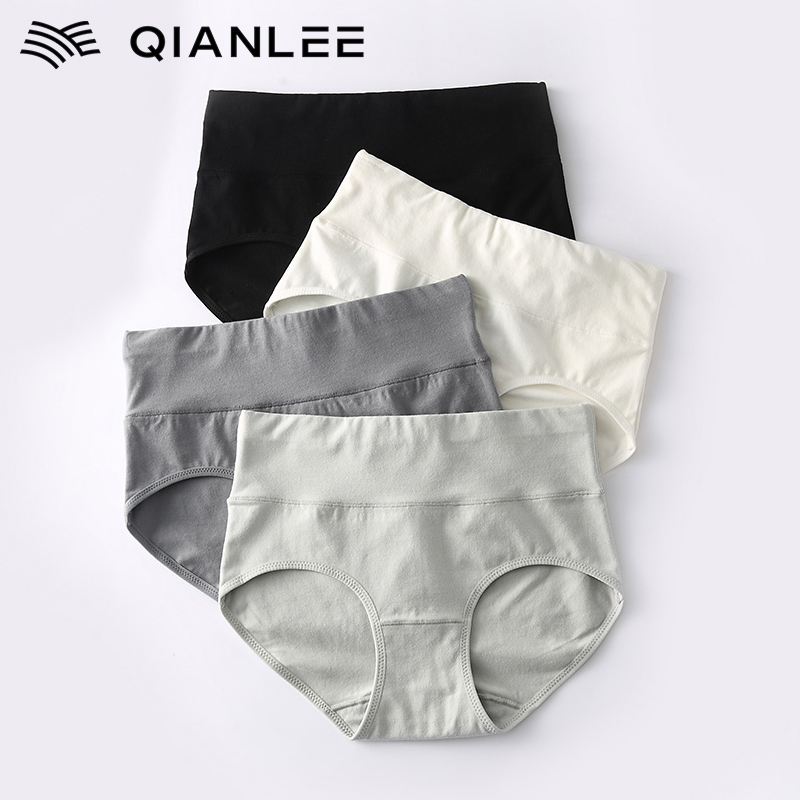 【产品名称:4条内裤女纯棉中腰高腰收腹提臀舒适透气全棉裆女士三角裤头底裤】