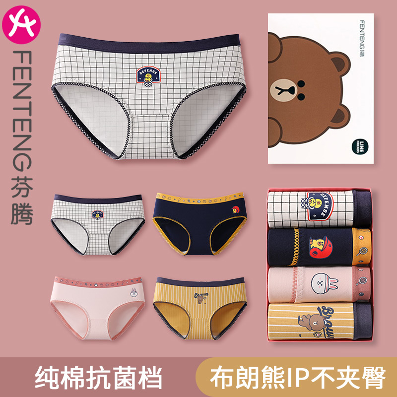 【产品名称:芬腾少女内裤中腰提臀纯棉抗菌裆少女卡通全棉甜美学生三角短裤头】