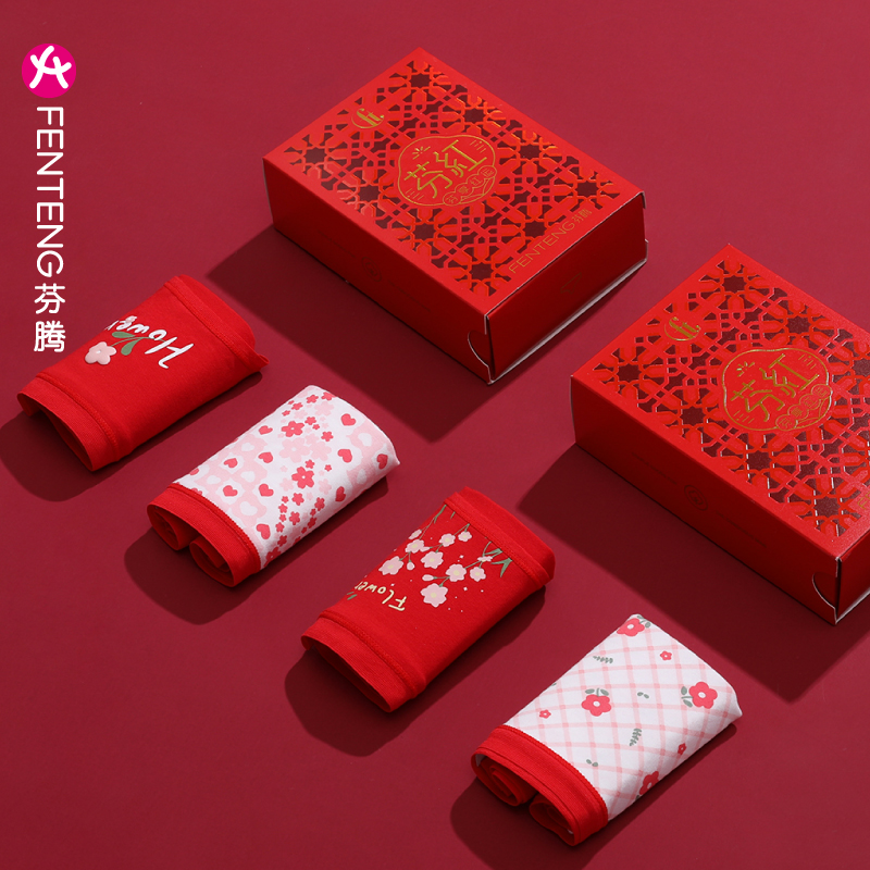 【产品名称:芬腾内裤2023新款大红女三角裤本命年纯棉抗菌裆可爱卡通少女裤头】