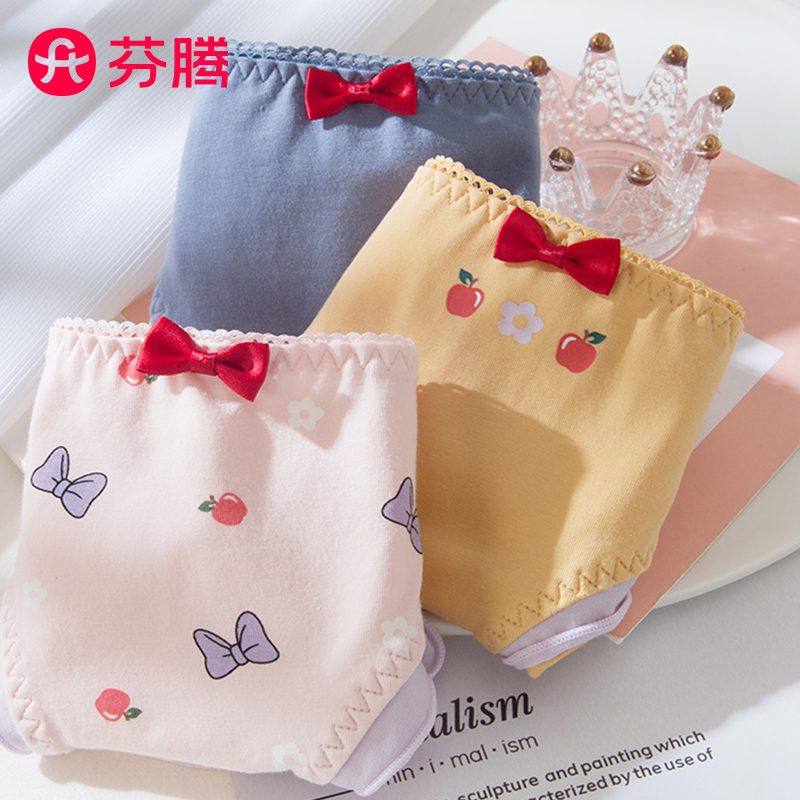 【产品名称:芬腾新款女士纯棉底档内裤可爱卡通少女舒适透气中腰三角裤头】