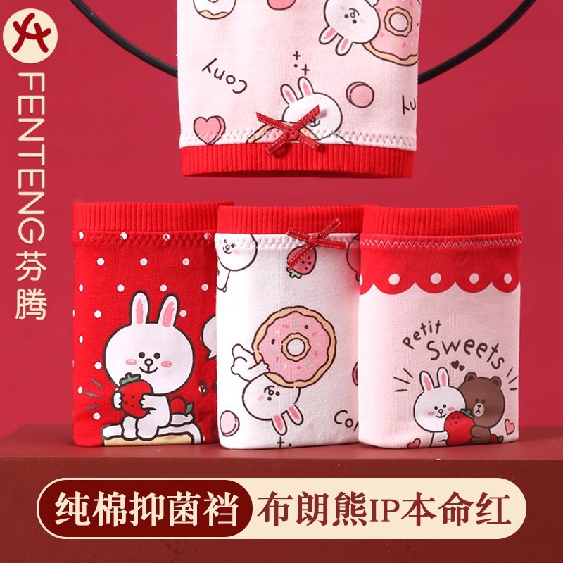 【产品名称:芬腾内裤女纯棉抗菌新婚卡通女生可爱大红色本命年学生女三角裤头】