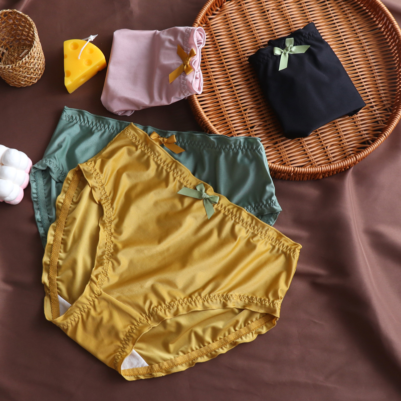 【产品名称:内裤女士大码胖mm200斤中高腰牛奶丝冰丝透气性感舒适弹力不勒腿】