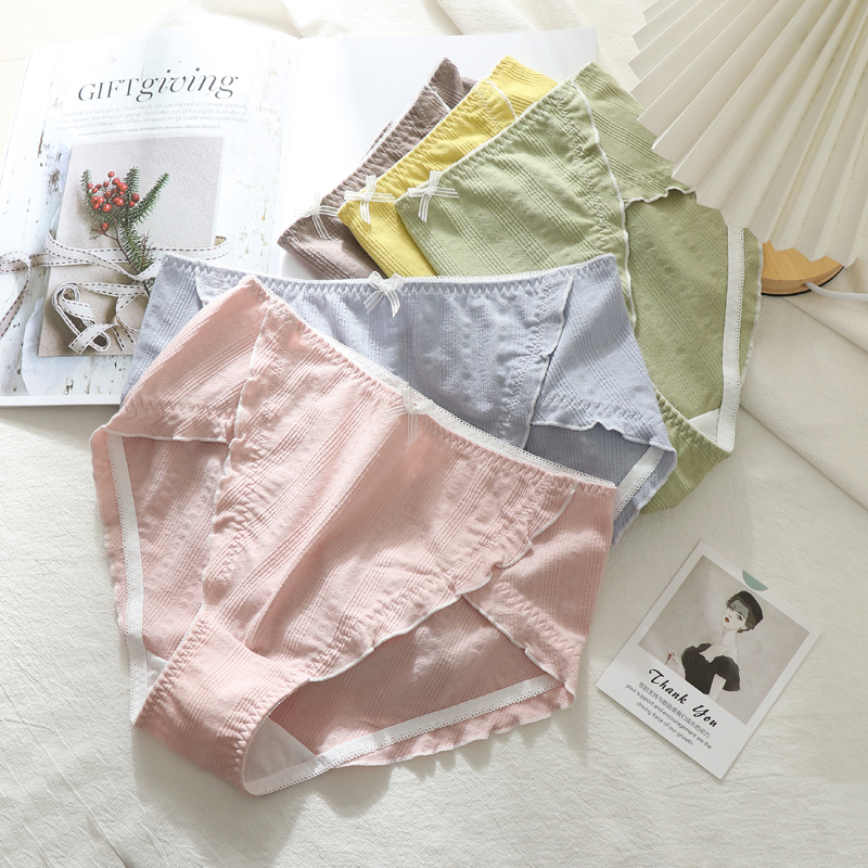 【产品名称:大码纯棉内裤女 胖mm200斤高腰透气甜美日系木耳边高开叉三角裤头】