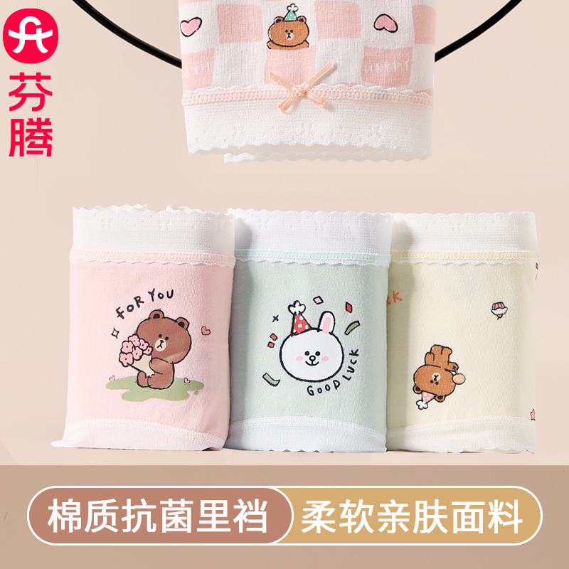 【产品名称:芬腾内裤女2023新款纯棉抗菌可爱中腰卡通女学生短裤透气三角裤头】