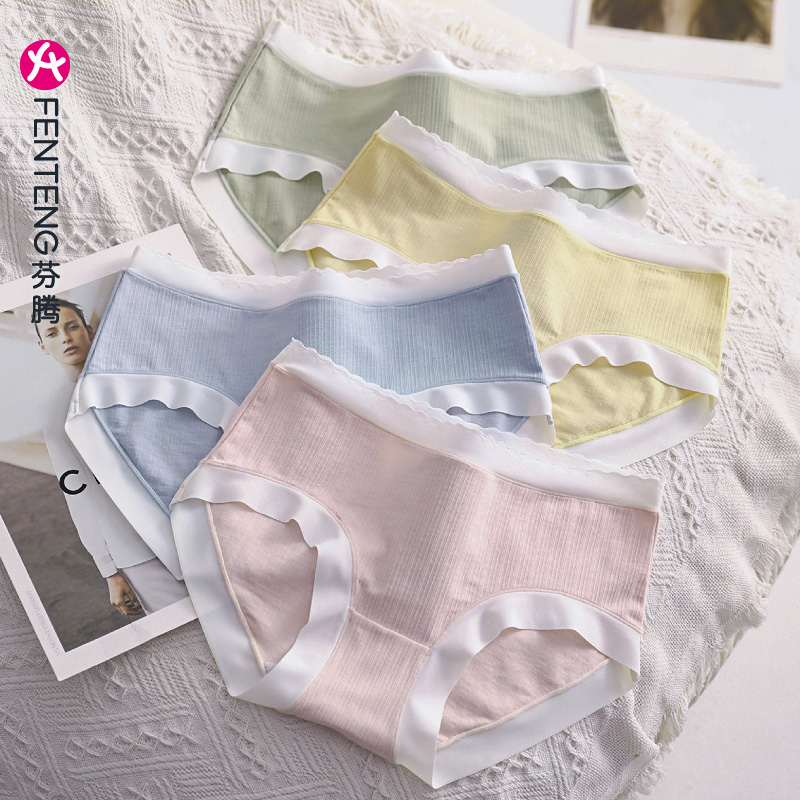 【产品名称:芬腾冰丝内裤女纯棉抗菌裆透气薄款少女生中腰甜美短裤衩三角裤头】
