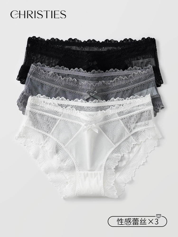 【产品名称:蕾丝内裤女士黑色白色少女生秋季轻薄纯棉裆透气纯欲风三角内裤】
