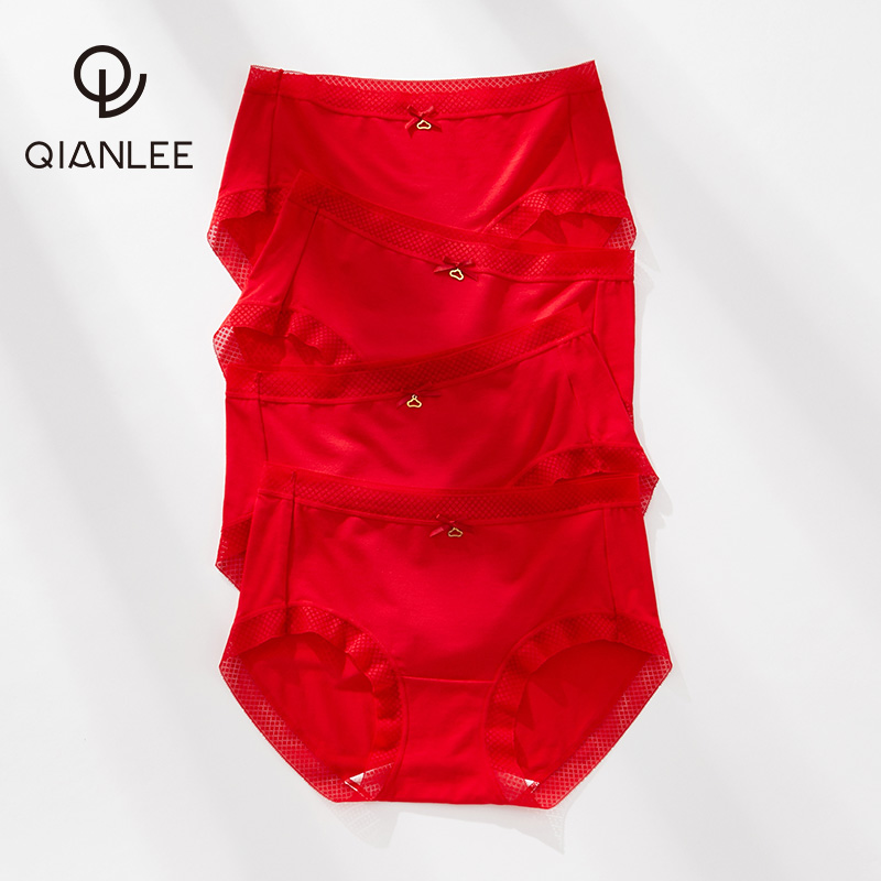 【产品名称:4条女士本命年虎年红色内裤女莫代尔无痕三角裤冰丝感透气提臀薄】