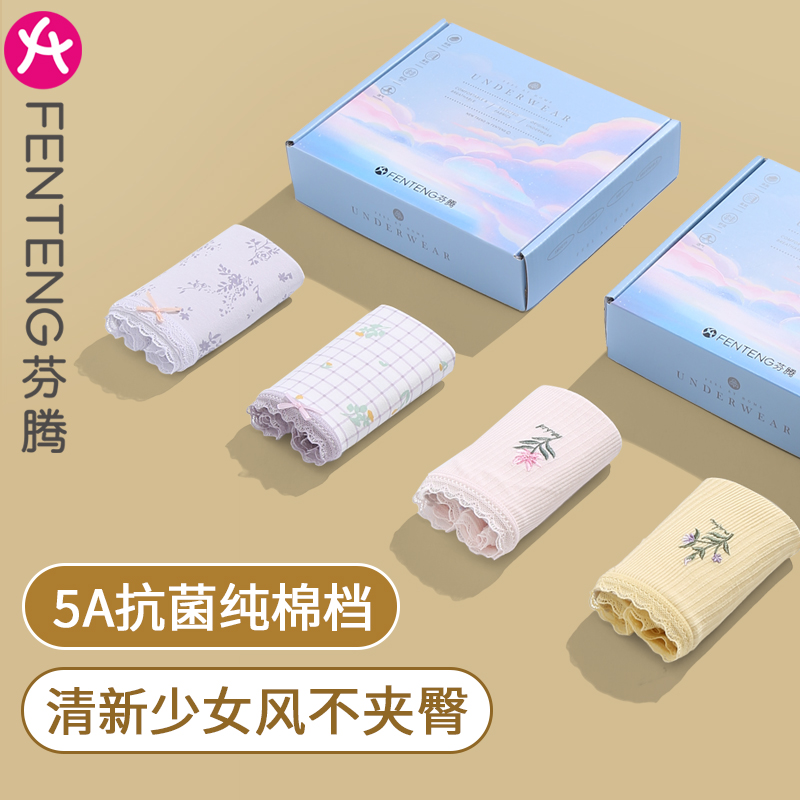 【产品名称:芬腾女士内裤抗菌纯棉裆少女底裤中腰可爱卡通女生三角裤短裤头】