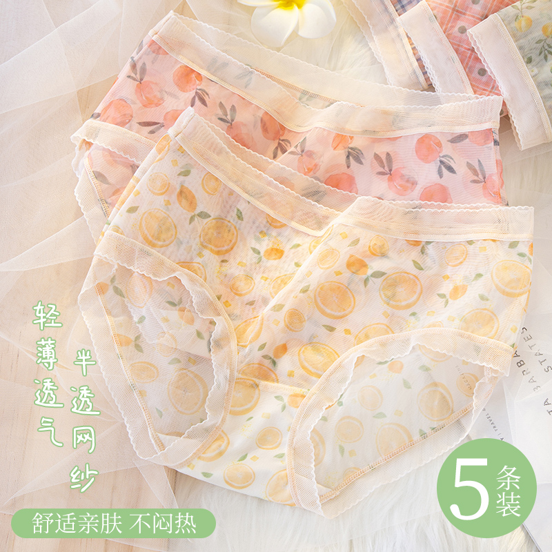 【产品名称:无痕冰丝女士内裤夏季薄款中高腰少女生三角裤新款性感女式短裤衩】