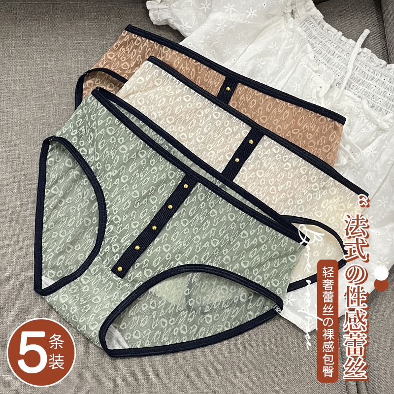 【产品名称:内裤女士蕾丝性感无痕透气中腰夏季薄款纯棉全棉裆少女三角短裤头】