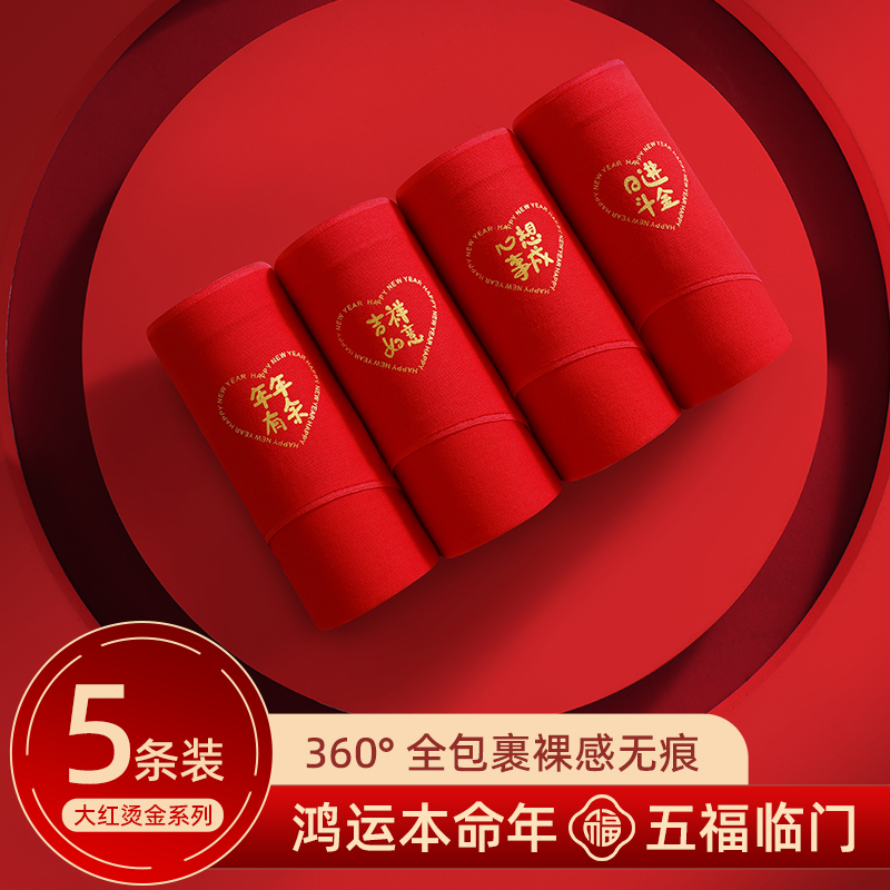 【产品名称:大红色内裤女士无痕纯棉抗菌中高腰收腹本命年结婚大码全棉式性感】