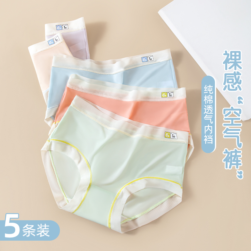 【产品名称:冰丝内裤女士中腰无痕纯棉裆日系少女生新款透气三角短裤夏季薄款】