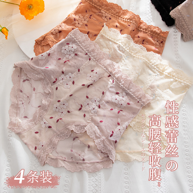 【产品名称:女士内裤女夏季薄款性感蕾丝三角裤无痕中高腰收腹胖mm大码短裤头】